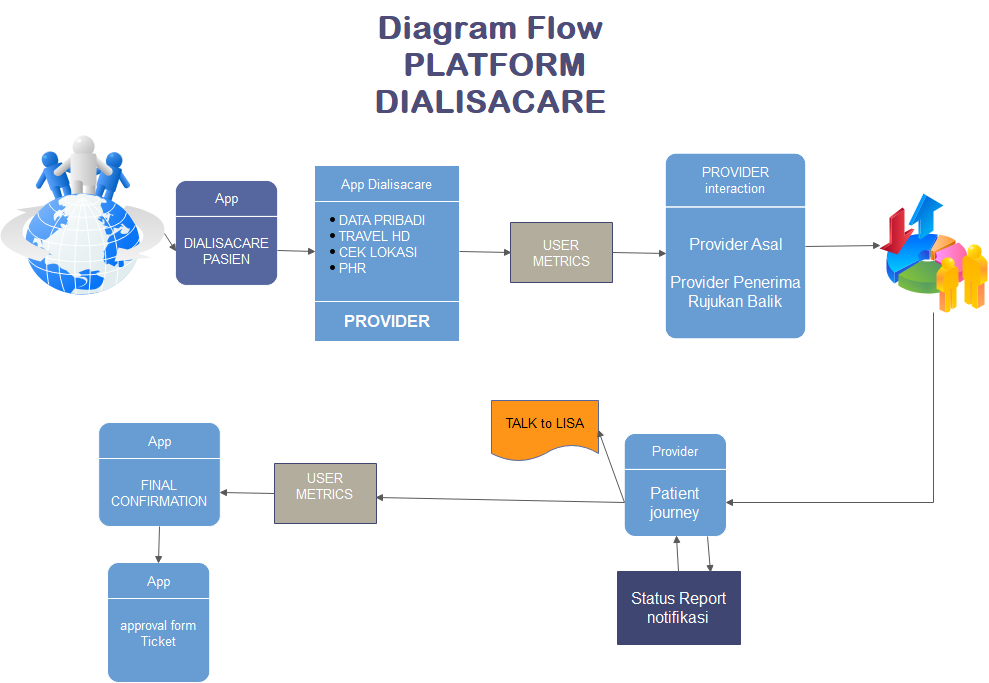Fitur hanya dapat dilakukan apabila Provider telah bekerjasama dengan aplikasi Dialisacare dengan mempersiapkan API (penggabungan ekosistem) tanpa kesulitan, bagi provider yang belum memiliki fitur ini dapat kami siapkan aplikasi untuk dapat dikembangkan.